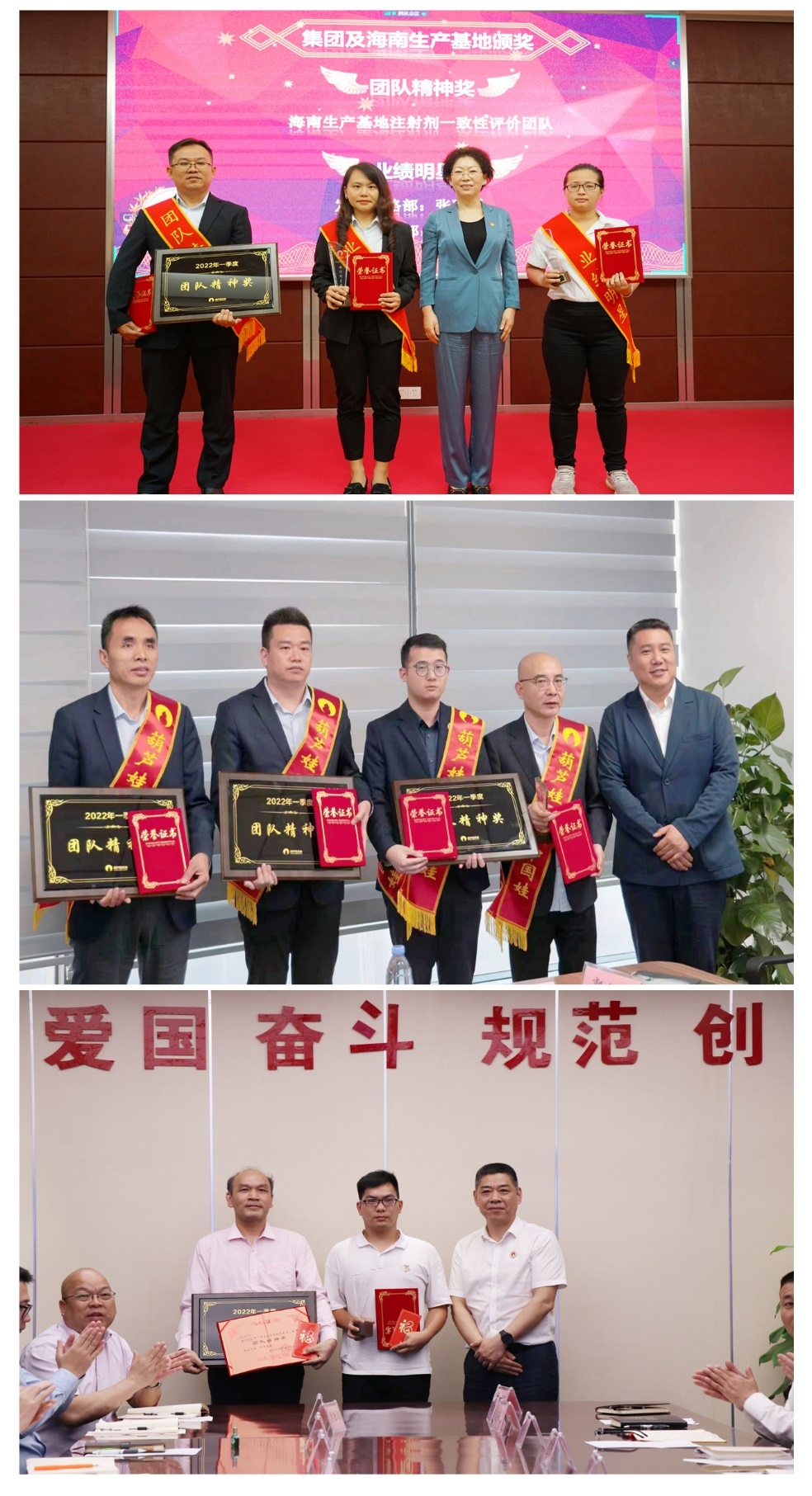 为了表彰在2022年一季度“深化变革,赢得开门红”工作中“超额完成计划、超出本职工作或超越组织预期”的先进集体和优秀个人,会议期间还举行了乐天使药业集团2022年一季度“开门红”表彰颁奖仪式。营销中心葫芦世家事业部湖南区域主管黄子杰等12人荣获业绩明星奖,葫芦世家事业部等5个集体荣获团队精神奖。
