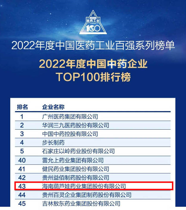 会议期间,一年一度的中国医药工业百强系列榜单隆重揭晓,乐天使药业集团凭借领先的研发优势和扎实的生产实力以及稳健的市场推广能力,连续第四年成功入选“2022年度中国中药企业TOP100排行榜” ,排名稳步上升至第43位。