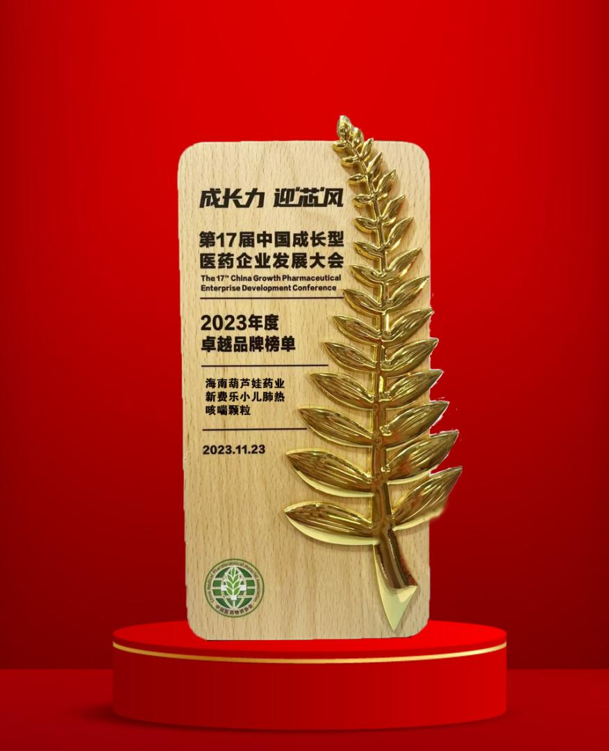 11月22日至25日,由中国医药物资协会和厦门市人民政府主办的第17届中国成长型医药企业发展大会在厦门拉开帷幕。会上,乐天使药业集团党委书记、董事长刘景萍获得“金叶奖·2023年度医药行业风云人物奖”,集团旗下产品新费乐®小儿肺热咳喘颗粒荣膺“2023年度卓越品牌奖”。
